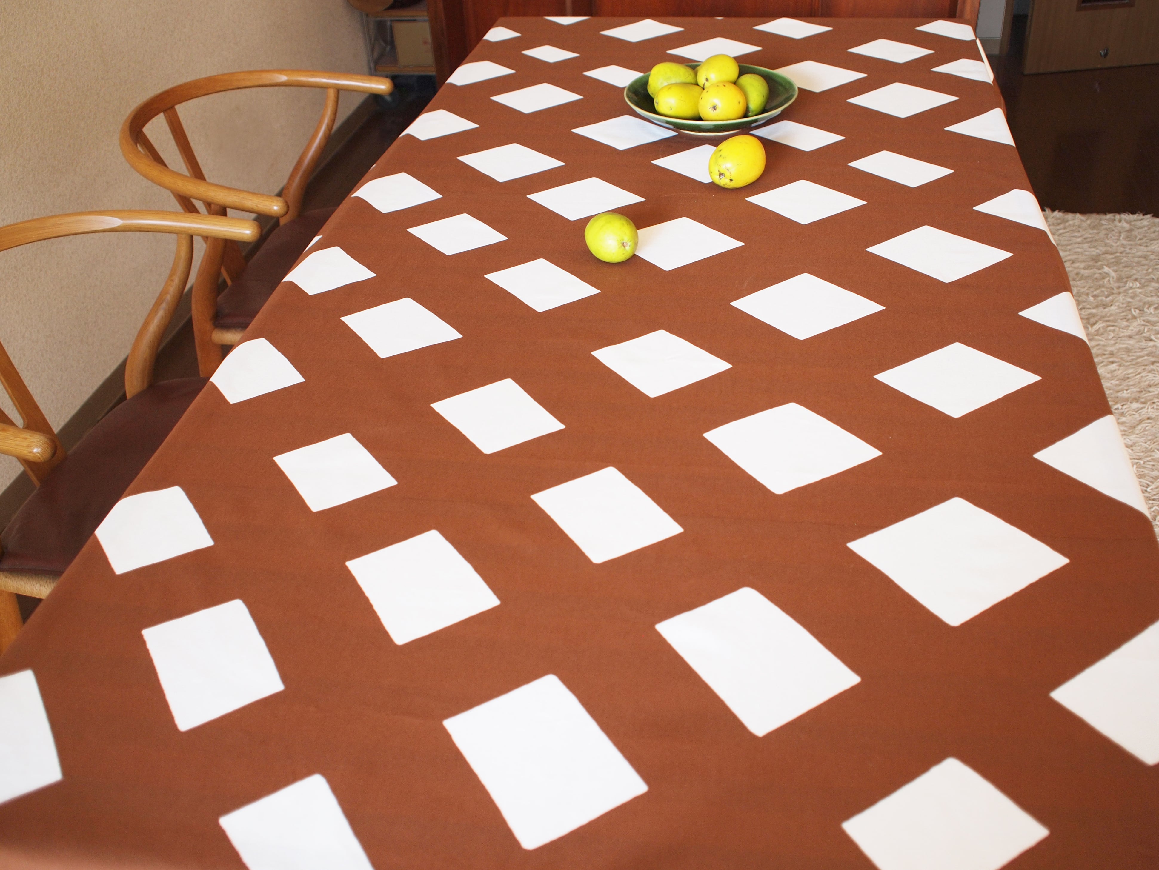 テーブルクロス ななめ格子/茶